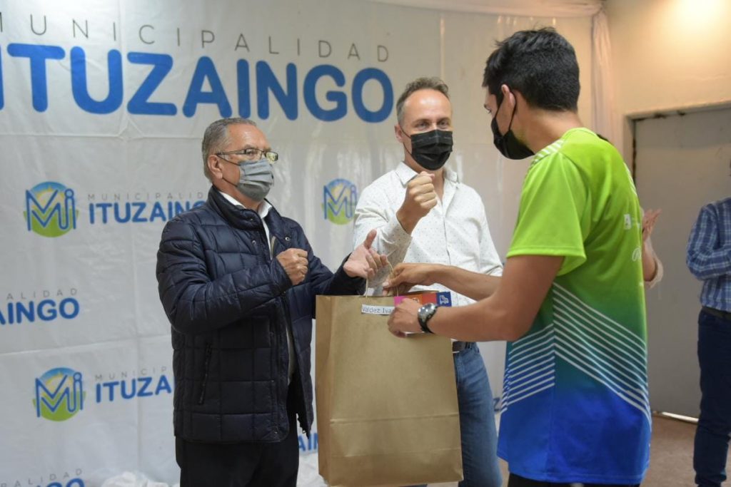 El Intendente de Ituzaingó Alberto Descalzo y el Presidente del Honorable Concejo Deliberante, Pablo Piana participaron de una reunión informativa en la que se hizo entrega de indumentaria deportiva para los y las jóvenes deportistas ituzainguenses que viajarán a Mar del Plata del 5 al 9 de noviembre para representar a Ituzaingó en la final de los Juegos Bonaerenses 2021.