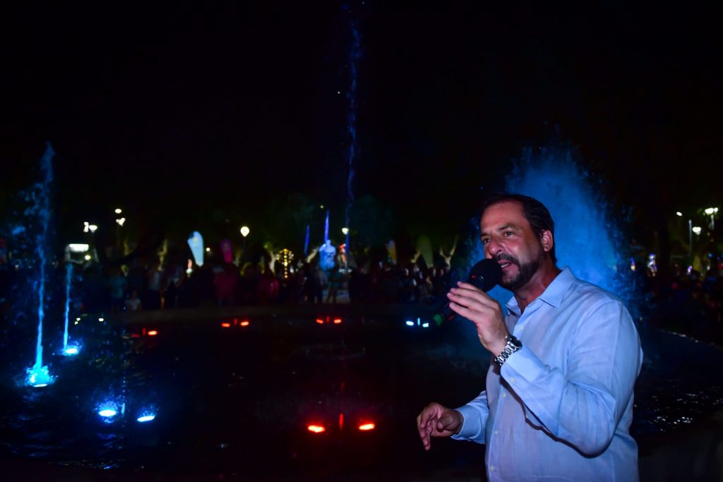 Durante la celebración, el jefe comunal y todos los vecinos y vecinas presentes disfrutaron de un espectacular show de luces y aguas danzantes en la nueva fuente de la Plaza Belgrano, que es única en el distrito. Además, la revalorización integral de esta plaza incluyó la reconstrucción de las veredas y la colocación de un nuevo sistema de riego, iluminación led, parquización y un nuevo pedestal donde se reubicó la estatua de Manuel Belgrano.