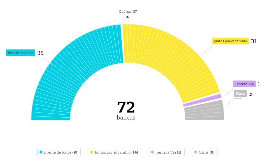 De ese modo, el Frente de Todos alineará una bancada de 35 senadores (hasta diciembre serán 41), mientras que Juntos por el Cambio sentará a 31 representantes propios (hasta diciembre, 25).