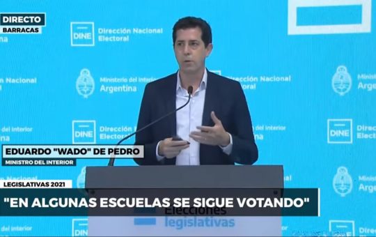 El ministro de Interior, Eduardo “Wado" de Pedro, estimó que los primeros resultados de las elecciones legislativas del domingo podrían comenzar a...