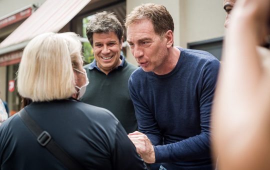 Los candidatos a diputados nacionales de Juntos, Diego Santilli y Facundo Manes, estuvieron ayer por la tarde en San Miguel....