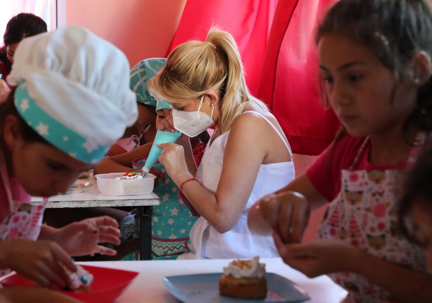 En su visita, Yáñez participó de una clase de pastelería junto a niñas y niños, además de conversar con las responsables del comedor. Le informaron que reciben diariamente a chicas y chicos para brindarles el almuerzo y merienda. También ofrecen apoyo escolar y talleres de cocina: "Nuestra meta es que los chicos vengan, disfruten, jueguen y y sean felices", comentó María del Carmen.