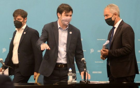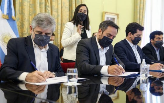 El ministro de Ambiente y Desarrollo Sostenible, Juan Cabandié; su par de Ciencia, Tecnología e Innovación, Daniel Filmus; y el...