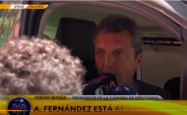 Poco antes de las 10, entró a la residencia de Olivos el presidente de la Cámara de Diputados, Sergio Massa, para reunirse con con Alberto Fernández para definir quién será el o la encargada de conducir al bloque del oficialismo en la Cámara baja.