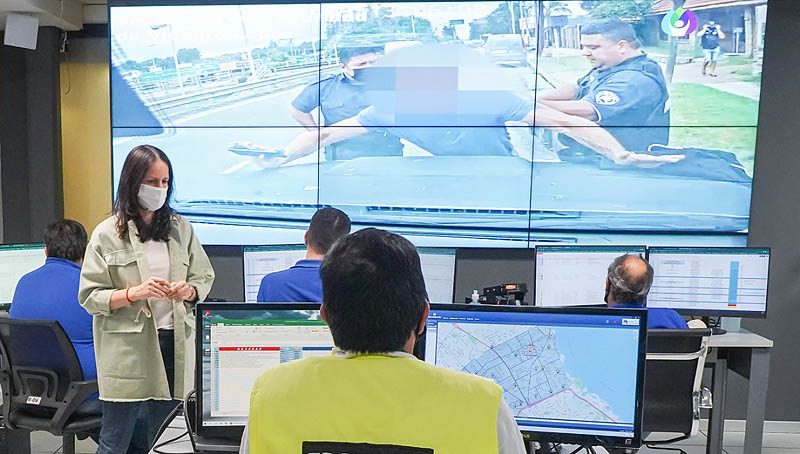 La Intendenta de Vicente López, Soledad Martínez, acompañada por Roberto Ehrman, Subsecretario de Seguridad, recorrió el Despacho Unificado del Centro de Monitoreo del municipio para observar el trabajo coordinado del equipo de seguridad en la detención de delincuentes.