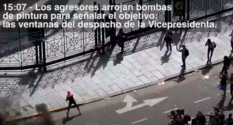 Cristina Kirchner publicó un nuevo video en el que se ve a las personas que tiraron piedras contra las ventanas de su despacho en el Senado y se confirma que había sido marcado con bombas de pintura roja.