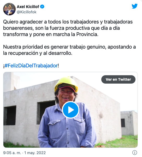 En sus redes sociales, el Gobernador Axel Kicillof agradeció "a todos los trabajadores y trabajadoras bonaerenses".