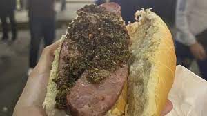 El turista se sumó al ritual de la previa y degustó el famoso sandwich antes de que empezara el partido...
