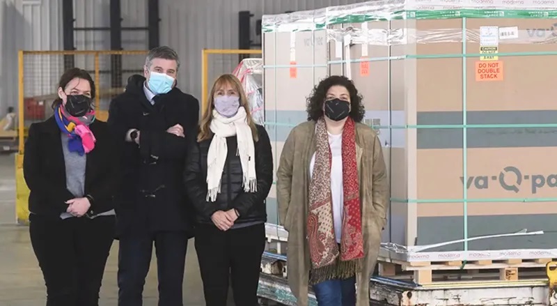 La ministra sostuvo que luego de la llegada del avión de Star Alliance United Airlines con la primeras dosis, el martes próximo arribarán otras 700.000 dosis al país del laboratorio Moderna por lo que el viernes y sábado siguiente se estarán distribuyendo a las 24 jurisdicciones.