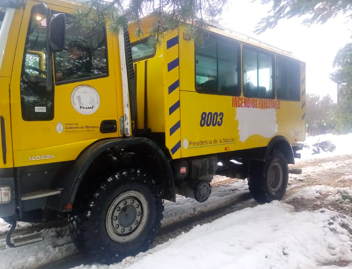 El Ministerio de Ambiente y Desarrollo Sostenible de la Nación, a través de la Brigada Nacional del Servicio Nacional del Manejo del Fuego (SNMF), asistió a Defensa Civil de la localidad de Lago Puelo y El Bolsón en la apertura y limpieza de caminos afectados por la intensa caída de nieve.