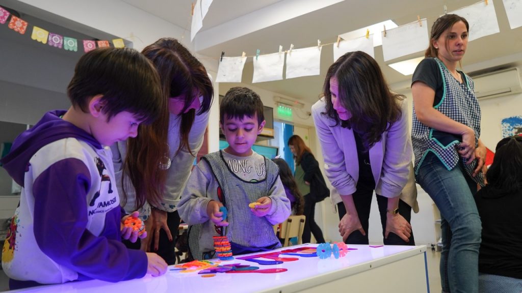 La intendenta de Vicente López, Soledad Martínez, recorrió el Jardín de Infantes N°6, una de las diez instituciones que incorporan la enseñanza de habilidades digitales desde los tres años. Allí participó de una clase de informática con los alumnos de sala de 5.