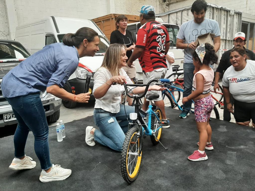 Las familias presentes en el teatro también opinaron sobre los festejos. Por ejemplo, Mariela, dijo: “La pasé genial compartiendo con los vecinos el almuerzo, mi hija se ganó una bicicleta y se divirtió mucho también”.