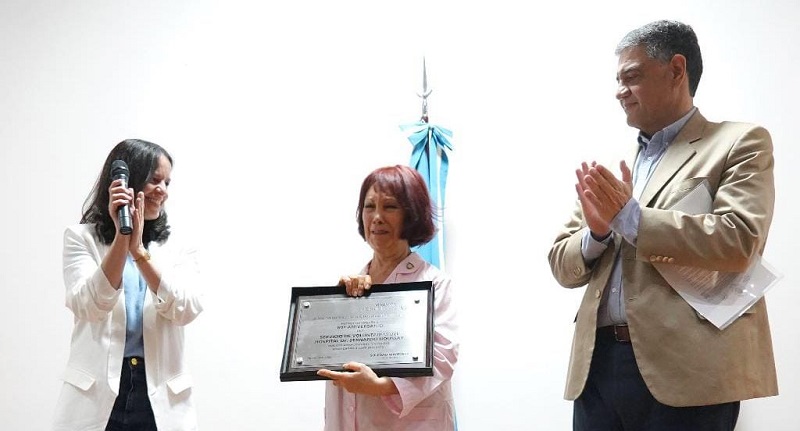 La jefa comunal le entregó a Liliana Margulies de Salomón el decreto que la declara vecina destacada de Vicente López. Lilana nació en Austria en 1921 y proviene de una familia judía. En la década del 30, a sus 18 años, escapó del holocausto y emigró hacia Buenos Aires. Desde hace 56 años forma parte del voluntariado y a sus 101 años continúa acompañando a pacientes, médicos y familiares en su tránsito por el hospital.