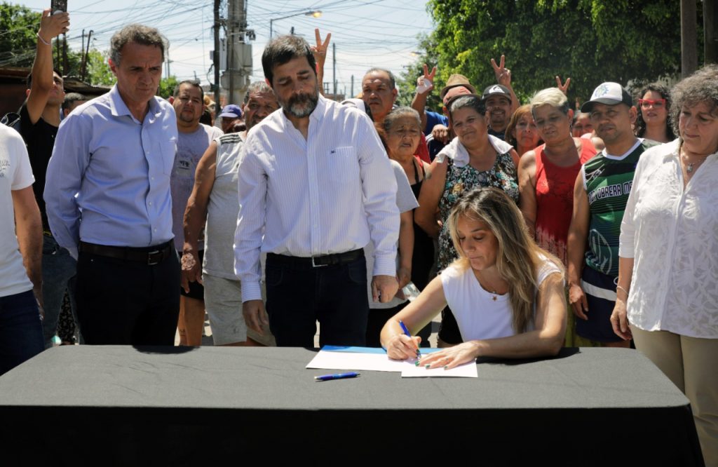 Luego de conversar con los vecinos del barrio y llevar adelante la firma del acuerdo, la presidenta de AySA destacó: “Nosotros acá estamos construyendo, no solamente una relación con esta comunidad que fue muy golpeada, sino que además estamos construyendo una obra que trae buena salud y que tiene que ver con cuidar el medioambiente. Traer a este barrio agua potable no es solamente traer calidad de vida, sino extender sus vidas. Por eso es tan importante traerles la dignidad, el reconocimiento porque ellos también son ciudadanos de San Martín, y por eso Fernando y todo el equipo de la municipalidad venían trabajando desde el primer día”