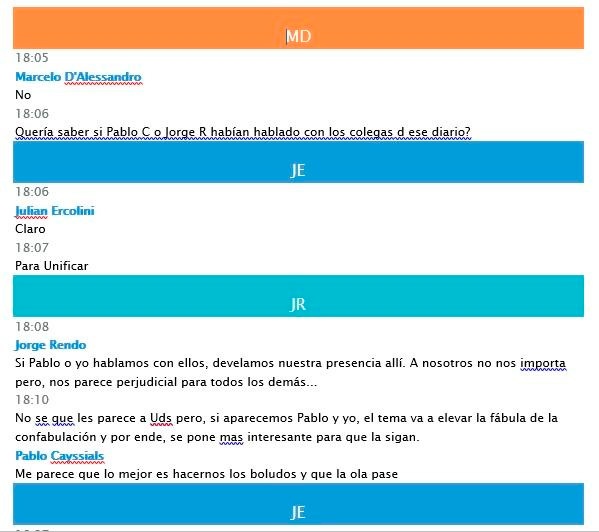 Apuntó que quienes intervinieron "contaban con una certeza: el principal grupo de medios de comunicación de Argentina garantizaría la no divulgación de los hechos. En apariencia, eran a la vez los convocantes al encuentro. Sabiendo eso, todos habrían comprometido sus mejores esfuerzos tratando de evitar que otros medios difundieran lo ocurrido".
