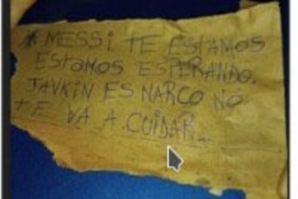 Fuentes policiales informaron que dejaron una nota extorsiva en un papel que decía: "Messi te estamos esperando. Javkin es narco, no te va a cuidar". Pablo Javkin es el intendente rosarino.