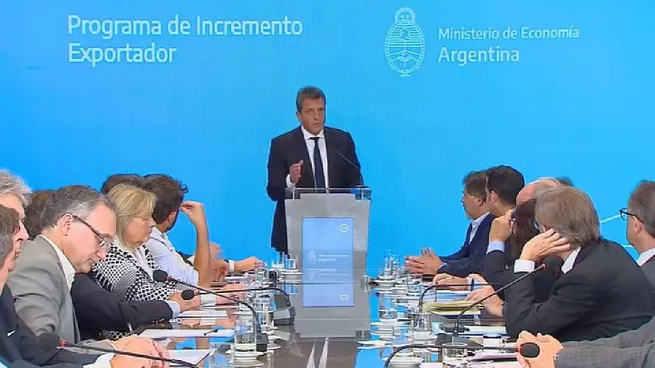 "En el sistema de liquidación de exportaciones, cada uno de ustedes tienen un plazo de 180 días (para liquidar), y hay muchos que hacen el esfuerzo, acumulan reservas, ayudan en la programación de políticas de crecimiento de reservas, mientras que ese esfuerzo de la gran mayoría de ustedes se ve desdibujado porque hay otros que especulan y le hacen trampa al Estado", puntualizó Massa.