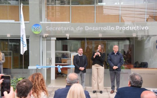 El Intendente de Ituzaingó Alberto Descalzo, junto al Jefe de Gabinete, Pablo Descalzo y la Subsecretaria de Desarrollo Productivo, Natalia...