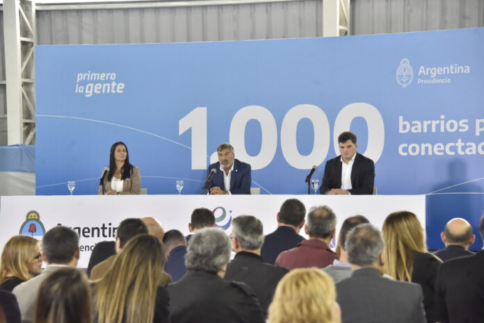 La intendenta interina de Malvinas Argentinas, Noelia Correa, estuvo junto al presidente del Ente Nacional de Comunicaciones (ENACOM), Claudio Ambrosini, en el Polideportivo de Tierras Altas-Tortuguitas, con el acto presentación del Programa “1.000 barrios populares conectados”, el cual ya permitió llegar a más de 5.600.000 personas que ahora cuentan con acceso a internet. También los acompañó el secretario de Economía del Conocimiento del Ministerio de Economía de la Nación, Juan Manuel Chepi.
