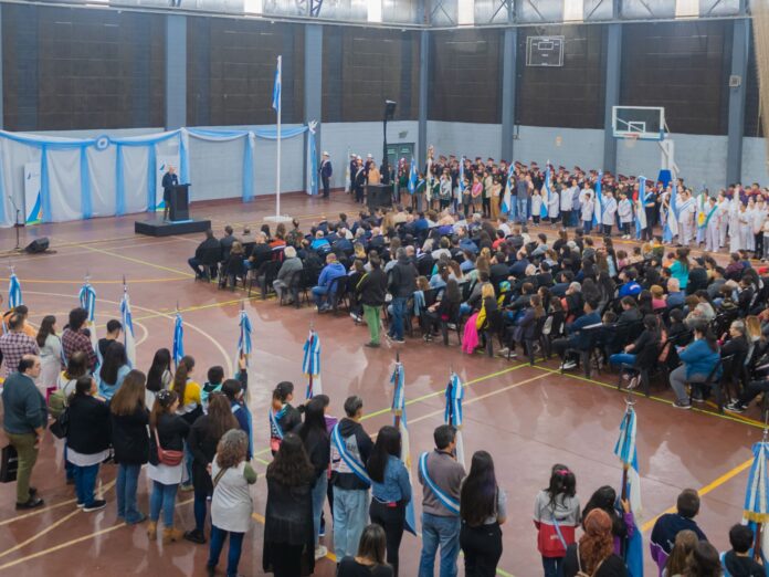 El Municipio de San Fernando realizó un acto cívico en el Polideportivo N°1 para celebrar el 213° aniversario de la Revolución de Mayo del que participaron el Presidente del HCD Santiago Aparicio junto a concejales, funcionarios municipales, consejeros escolares, inspectores de educación, representantes de instituciones y abanderados de escuelas públicas y privadas de la ciudad.