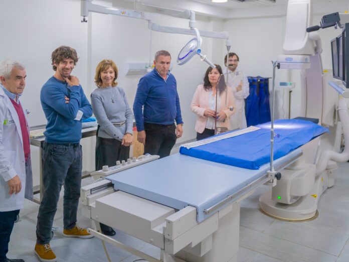Por su parte, el cardiólogo Dr. Norberto Vázquez, coordinador del área cardiovascular del Hospital Municipal, explicó en qué consisten los nuevos sectores: “Tenemos un Angiógrafo, un equipo para estudiar todos los vasos, arterias y venas del organismo. Normalmente lo utilizamos para hacer ‘cateterismo’, que nosotros llamamos cinecoronariografía, para estudiar y hacer diagnósticos, y también para terapéutica endovascular que es la colocación de stent, de endoprotesis, la embolización de aneurismas cerebrales, además de Electrofisiología que es la colocación de marcapasos, cardiodesfibriladores y resincronizadores“.
