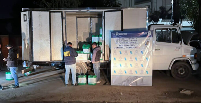 Finalmente, el camión Mercedes Benz fue hallado en el domicilio del sospechoso, junto con unos 250 bidones de un agroquímicos, valuados aproximadamente en 20 millones de pesos, según precisaron las fuentes.