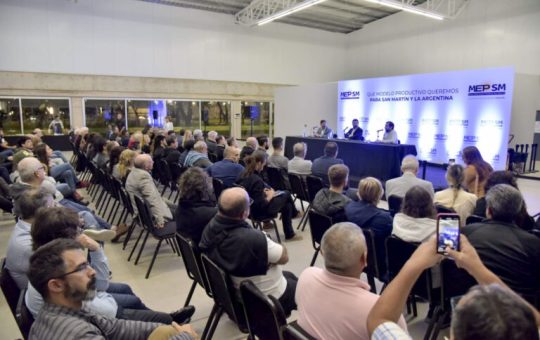 El intendente de San Martín Fernando Moreira y el economista y periodista Alfredo Zaiat brindaron una charla en el nuevo...