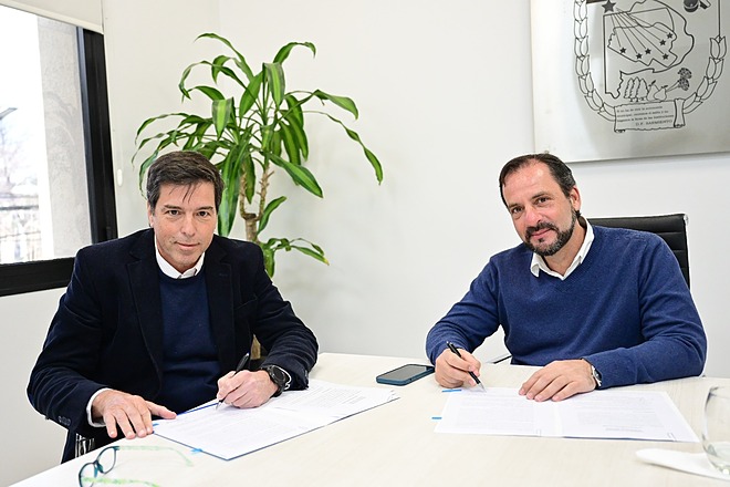 El intendente Ariel Sujarchuk firmó un convenio con las autoridades de la empresa de telecomunicaciones Iraola y Asociados con el objetivo de incorporarla al Polo Tecnológico FlyTech del partido de Escobar.