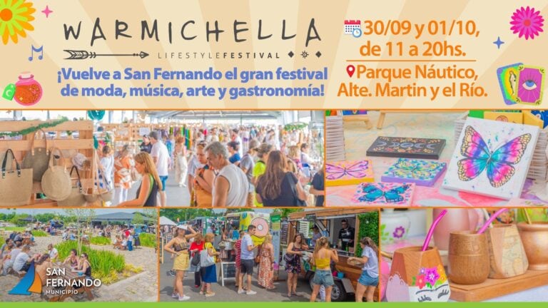 El Municipio de San Fernando volverá a recibir al Warmichella Lifestyle Festival en el Parque Náutico (Alte. Martin y el Río), el sábado 30 de septiembre y el domingo 1° de octubre, de 11 a 20h. Se trata de una propuesta familiar de espíritu libre, emprendedor y armonioso, que reúne a las tendencias de moda, artes visuales, recitales de bandas emergentes, exquisita gastronomía y muchas más sorpresas. La entrada es totalmente libre y gratuita.