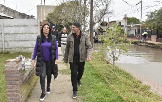 La intendenta interina de Malvinas Argentinas, Noelia Correa, visitó el avance de la obra de pavimentación que se realiza en...