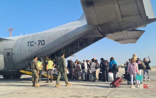El avión Hércules C130 llegó desde Tel Aviv con 49 ciudadanos a bordo que buscan regresar al país tras los...