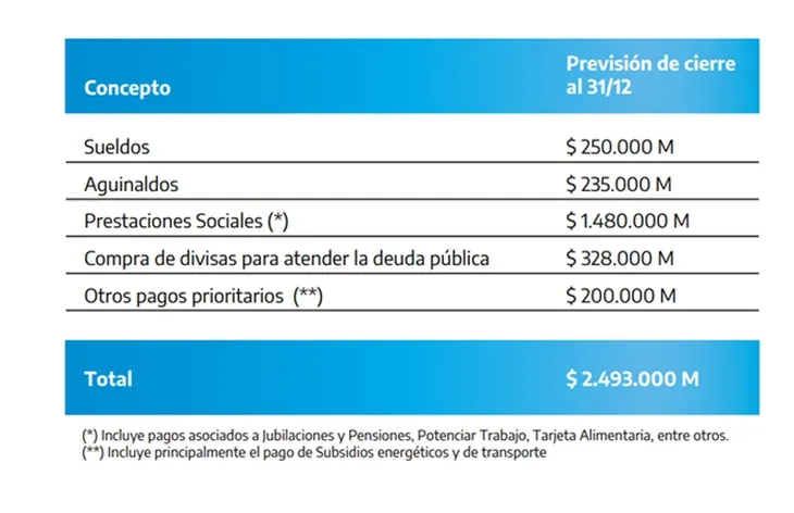 De cara al 10 de diciembre, el Ministerio de Economía emitió un comunicado en el cual afirmó que están "los fondos necesarios para financiar el programa de pagos de dicho mes".