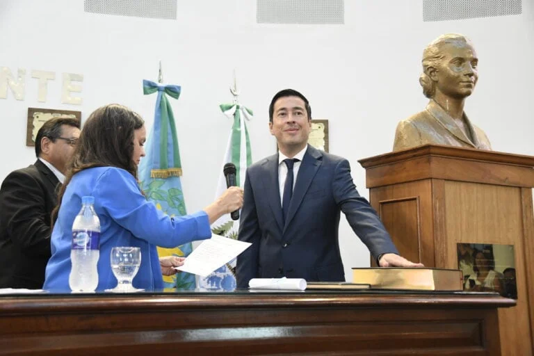 Luego de ser reelecto con el 60% de los votos, prestó juramento en el Honorable Concejo Deliberante (HCD) de la comuna, lugar donde también lo hicieron los nuevos concejales. Acompañaron: Luis Vivona, Cristina Álvarez Rodríguez, María Luján Salgado, Noelia Correa, familiares y vecinos del distrito.