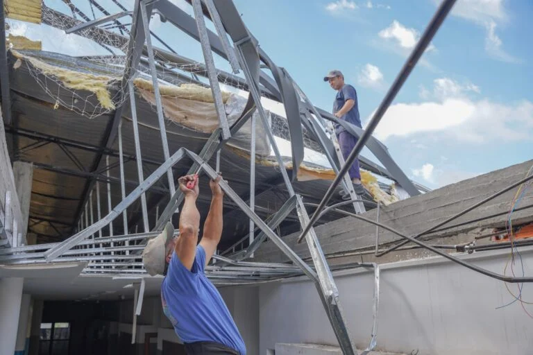 Hace unas semanas, el Intendente Pablo Descalzo, junto a la Presidenta del Consejo Escolar Gabriela Alonso, visitaron la escuela para realizar un relevamiento del alcance de los daños. A través de un trabajo articulado junto al Gobierno de la Provincia de Buenos Aires, ya comenzaron las tareas de limpieza y despeje que permitirán el montaje del nuevo techo. A su vez, y en constante comunicación con los directivos y la comunidad escolar, ya se está trabajando en la puesta en valor de la institución.