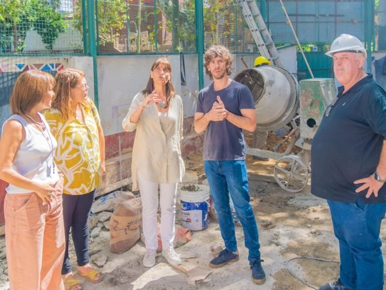 En su visita a las obras de renovación integral que el Municipio realiza en la Escuela Especial N°501, el Intendente Juan Andreotti estuvo acompañado por la Secretaria de Obras Públicas Cecilia Tucat, la Directora General de Obras Públicas Isabel Dumas y el Presidente del Consejo Escolar, Matías Del Federico.