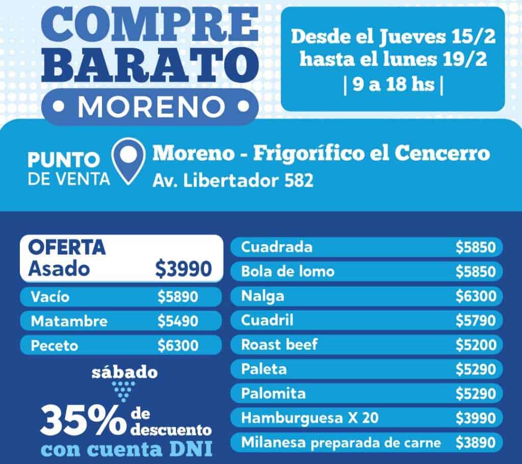 El punto de venta continuará siendo el frigorífico “El Cencerro”, ubicado en Avenida del Libertador 582 en Moreno Centro, de 9 a 18 horas.