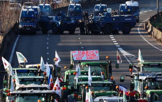 Hubo 79 arrestos cuando bajaron de los tractores para tomar un mercado mayorista. Grandes despliegues antidisturbios y el gobierno de...