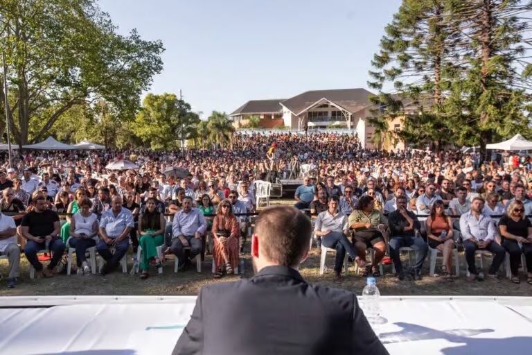 El intendente de Hurlingham, Damián Selci, abrió las sesiones del HCD en el predio municipal ante más de 4 mil personas. En su discurso, advirtió sobre la “tragedia” social que implican las medidas adoptadas por el ejecutivo nacional y cómo esto afecta a los vecinos y al municipio en general. Es la primera vez que se realiza una apertura de sesiones con la presencia multitudinaria de vecinos que escucharon atentamente sus palabras.