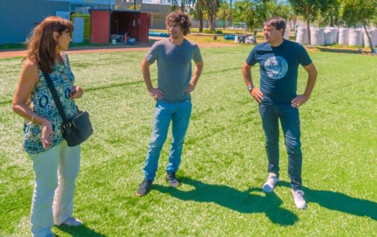 Juan Andreotti recorrió la obra de una nueva cancha sintética de Fútbol 11 en el Polideportivo N°2