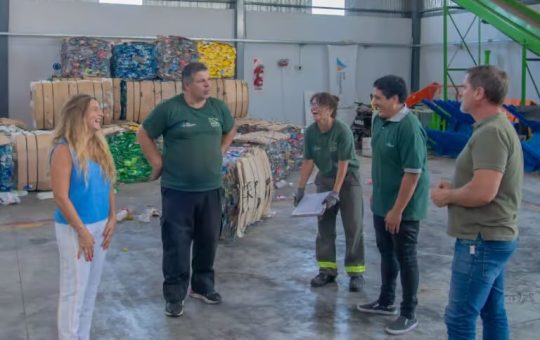 La secretaria Eva Andreotti explicó el funcionamiento de la Planta de Reciclaje Municipal, donde se clasifican plásticos por colores y...