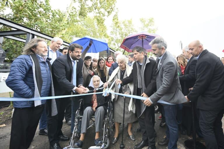 El gobernador Axel Kicillof encabezó este lunes el acto de inauguración de un nuevo espacio para la memoria y la promoción de los derechos humanos en el ex centro clandestino de detención (CCD) “La Cacha”, en la ciudad de La Plata. Fue junto al ministro de Justicia y Derechos Humanos, Juan Martín Mena; el intendente local, Julio Alak; el subsecretario de Derechos Humanos, Matías Moreno; la presidenta de Abuelas de Plaza de Mayo, Estela de Carlotto; y la madre de Plaza de Mayo, Herenia Sánchez de Viamonte.