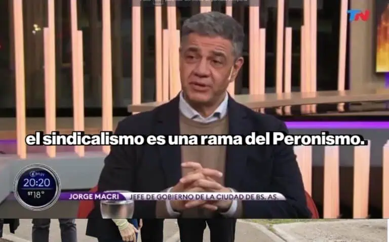 En una entrevista con el canal TN, Jorge Macri disparó: “El sindicalismo no es representante de los trabajadores, es una rama del peronismo. Cuando la inflación es peronista no se quejan y cuando la inflación es de un espacio político no peronista se quejan. ¿Por qué? Porque ellos son la columna vertebral del peronismo”.