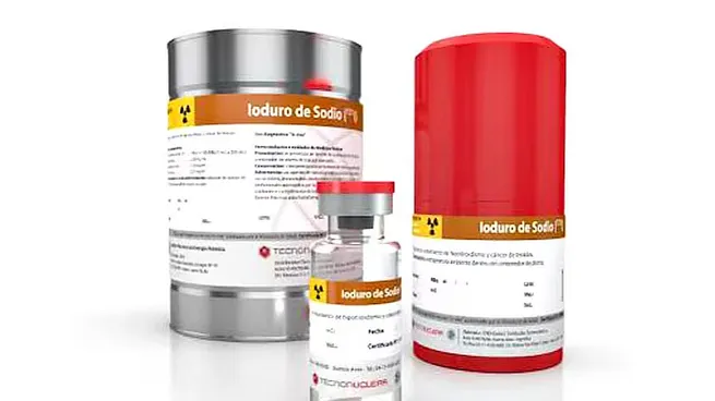 La caja de 40x40 centímetros llevaba el logo de peligrosidad que es una suerte de trébol negro con un fondo triangular amarillo con la inscripción de “Tecnonuclear”. El contenido es para uso médico, específicamente para tratamientos oncológicos.