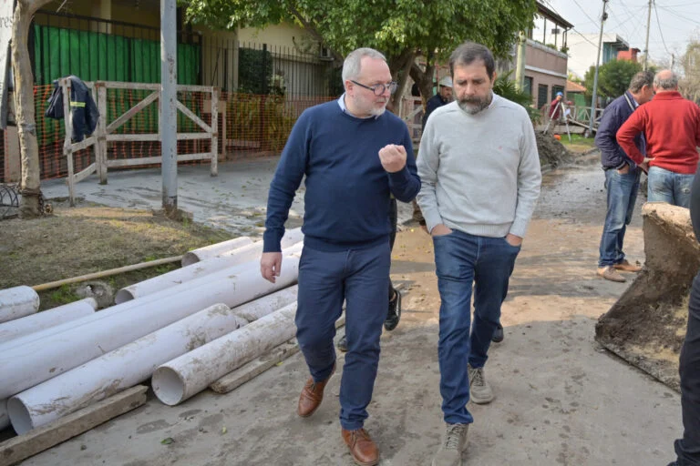 El intendente de San Martín, Fernando Moreira, y el presidente del Comité de Cuenca del Río Reconquista (COMIREC), Martín Sabbatella, visitaron las obras de la red secundaria de cloacas que se realizan en los barrios Independencia, Lanzone, Carcova y José León Suárez, para beneficiar a más de 30 mil vecinas y vecinos.