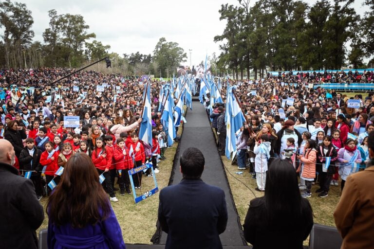 El acto se realizó en las inmediaciones del Palacio Municipal. Participaron 60 escuelas del distrito, con más de 4 mil alumnos, familias, docentes y comunidad educativa. Leonardo Nardini les tomó la promesa a los chicos, y la banda de música militar “Combate de San Lorenzo” entonó el Himno Nacional Argentino.
