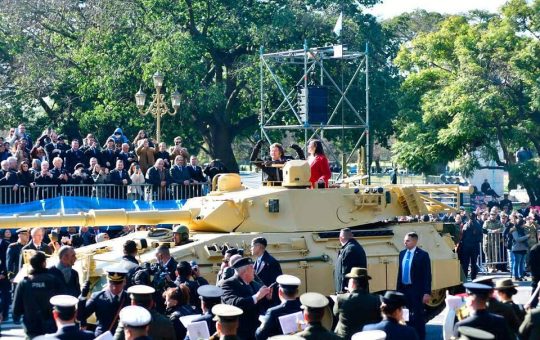 Hubo pancartas que reivindicaban a los golpistas carapintadas y retirados investigados por torturar conscriptos en Malvinas en el desfile que...