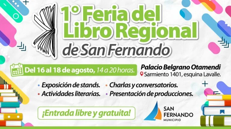 El Palacio Belgrano Otamendi, sito en Sarmiento 1401 y Lavalle, será el ámbito donde se desarrollará entre el 16 y el 18 de agosto la primera Feria del Libro Regional de San Fernando, con entrada libre y gratuita. En este acontecimiento cultural tendrán lugar exposición de stands, presentación de producciones, charlas y conversatorios, clases abiertas, shows musicales y diversas actividades literarias.