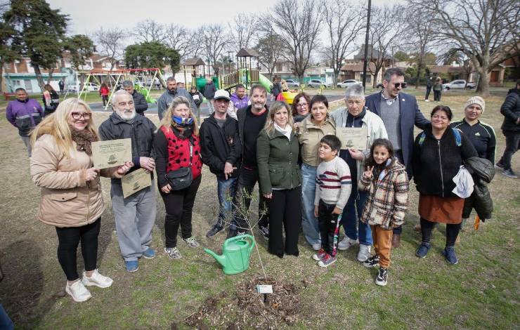En la jornada, además, se reforestó la plaza con ejemplares nativos, en una iniciativa conjunta con el Ministerio de Ambiente de la provincia. Algunos de ellos contaron con el padrinazgo de vecinos frentistas para su mantenimiento y cuidado, como es el caso de Marta Falabella, Jorge Rosso y Jorge Duarte.