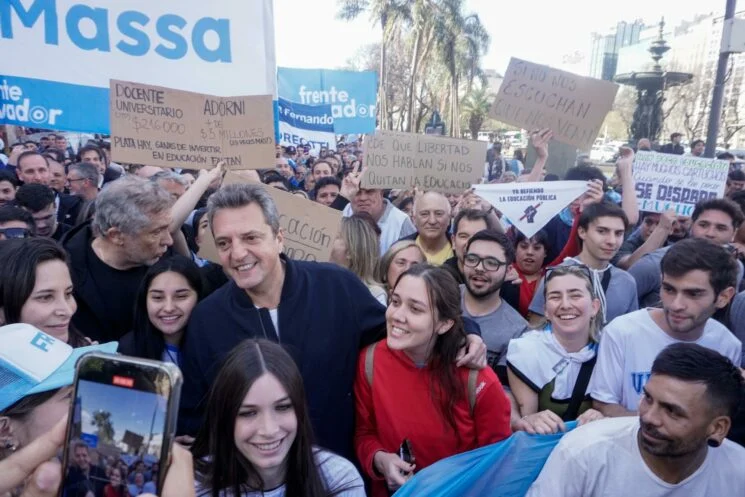 El ex candidato presidencial de Unión por la Patria (UxP) Sergio Massa se sumó a la marcha Uuniversitaria al Congreso y dijo estar "convencido" de que "no hay nada más movilizador que la universidad pública".