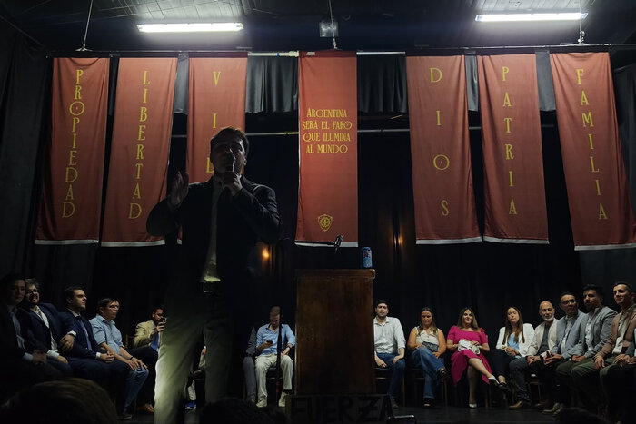 Con la extraña ventaja de la ignorancia, en la Sociedad Italiana de San Miguel un centenar de varones que no superan los 30 años se hicieron presentes para lo que ellos mismos autodenominaron "un evento histórico". Aunque en realidad se trató solo de la presentación privada de la nueva agrupación "Las Fuerzas del cielo", un rejunte de referentes libertarios del mundo virtual que buscan ganar más visibilidad con la intención de hacerse un lugar en las listas del 2025 de La Libertad Avanza. Y lo hacen a fuerza de provocaciones: el acto mantuvo una estética similar al Partido Nacional Fascista de los 30', referencia de la que ellos mismos se jactaron en las redes sociales.